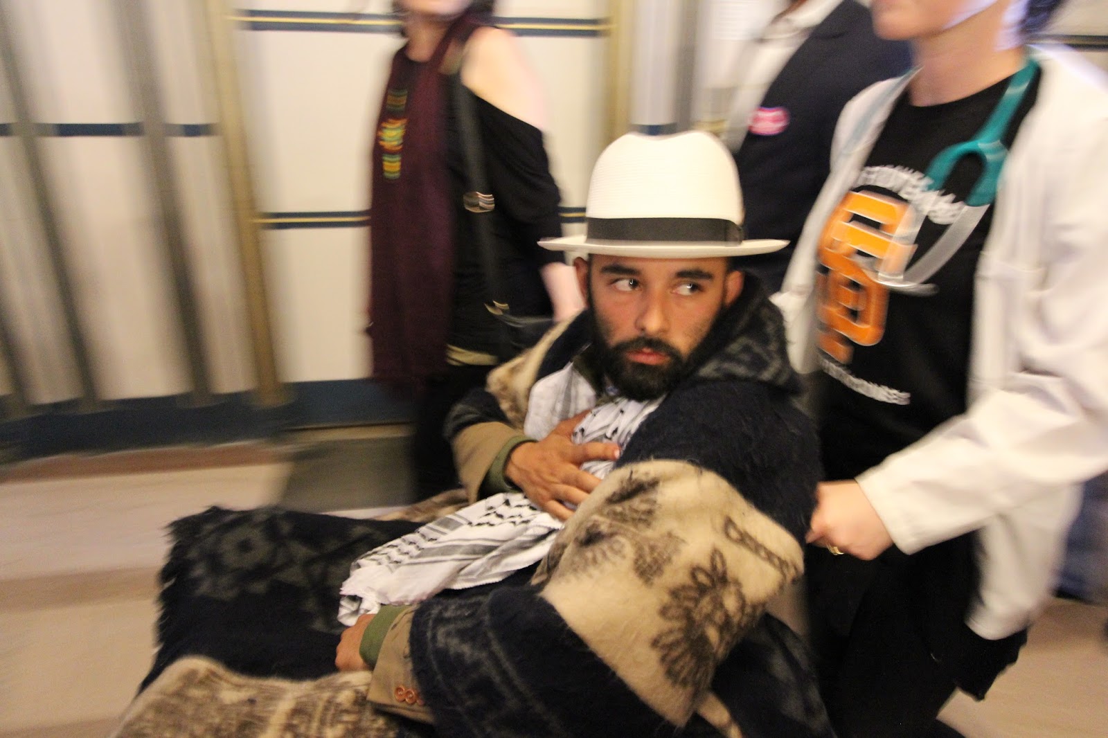 The Medical Staff from University of California - accompanied the 5 fasting - pushed their wheel chairs. It was a sight to behold.